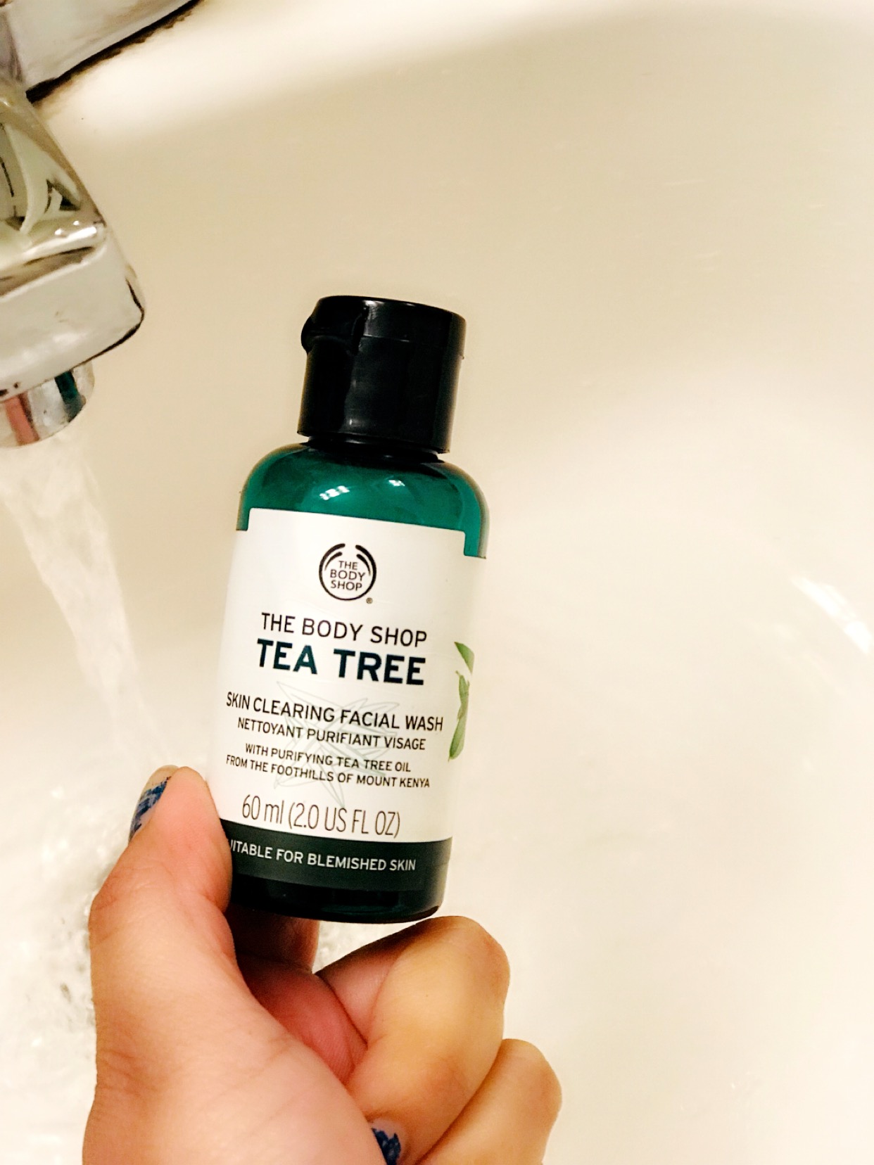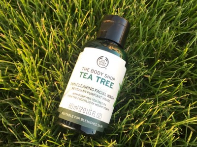 The Body Shop Tea Tree Skin Clearing Facial Wash. This face wash is a cooling lather that works to gently removes sebum excess, dirt and makeup without stripping the natural oils. It’s also a soap-free gel based face cleanser. It has a fresh, clean and tea tree smell that’s not overpowering.