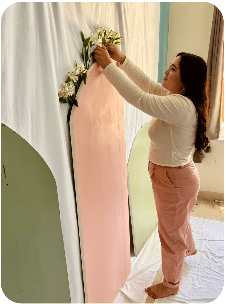Very early on in life, I showed interest by drawing whenever I could and even getting caught sketching on the corners of my class notebooks. But a figure in my life that made me most interested in art was my abuela, Cristina. She embodied creativity in many forms like jewelry making and painting. I liked to observe her and one day she caught my curious eye and sat me down to teach me both. From then on I began to continuously draw my flowers, vines, and celestial symbols which have become staples in my halo designs. A few of our halo designs were inspired by decorations we’ve had in our home for what seems like forever. My mom gave me these sun mirrors that have been in the family for thirty-plus years which later became the idea behind our “Marisol” halo. All little moments and gifts I wanted to honor when creating Divina Halos.