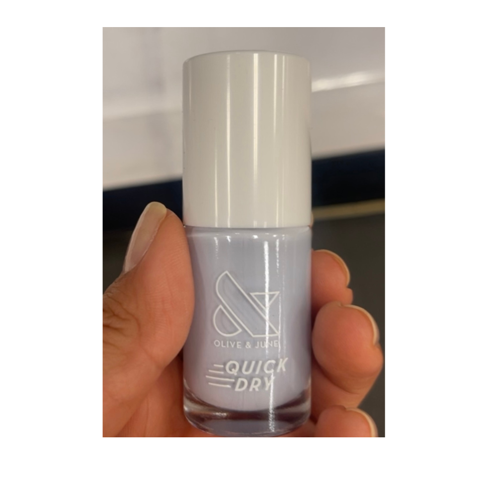 Olive and June RINK I have been using Olive and June all this year. I love how this polish is vegan and cruelty free. Rink would be a great pick for the blueberry trend. Its an icy blue and this quick dry is what it says, It dries in a minute.
