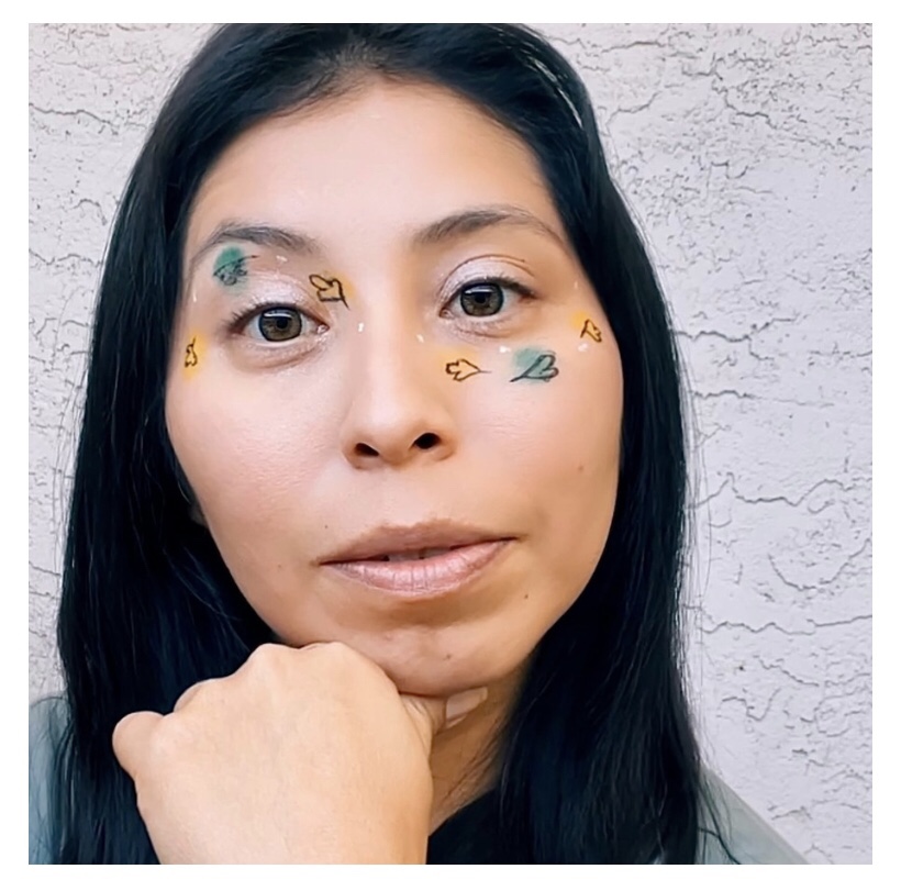 Now the cute little leaves, I placed the color I wanted first. Both shades are from the brights palette 2.0 from Beauty Bay. After I had the color placed I used a black liner to draw the leaves. After I darken each leaf, I added a little dot of white eyeshadow around to give it more of a moving feel.
