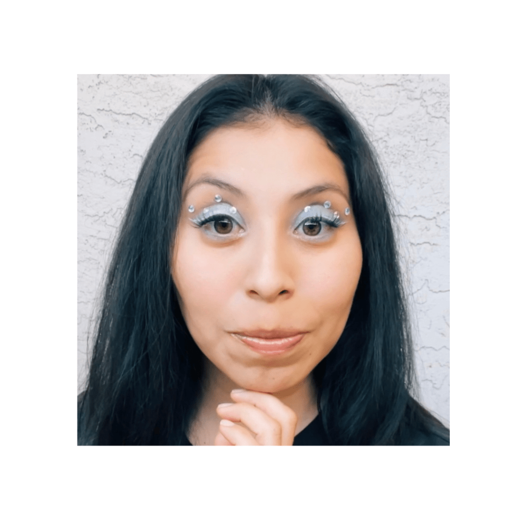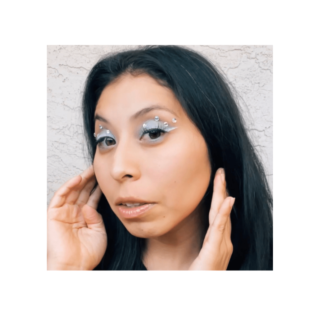 Then I used a white activated liner and place grinstones. I never used the white liner before and I loved how well it worked and it was easy. I placed the blue on my lower lash line as well.