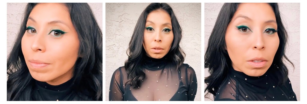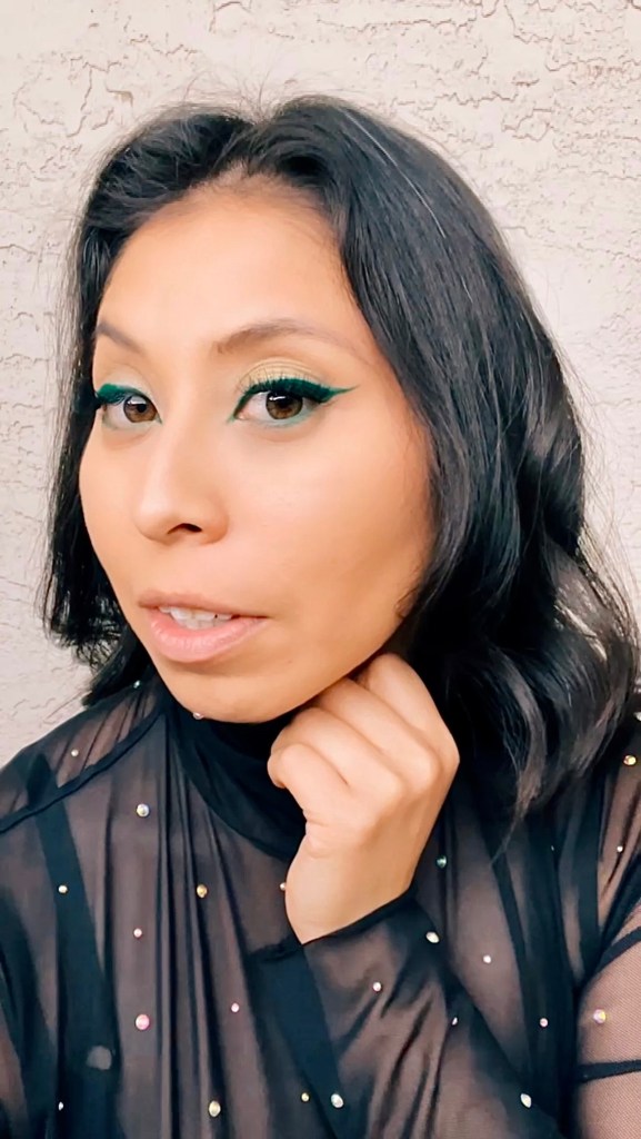 I create the sharp dark green liner was from the beauty bay 2.0 palette. It was a shadow that I used micellar water to create a liner. I also blended the same green shade on my lower lash line. The lashes are from the impress collection from kiss. I will recreate this look again and again. IF we get an announcement tonight I will probably will wear black all week.